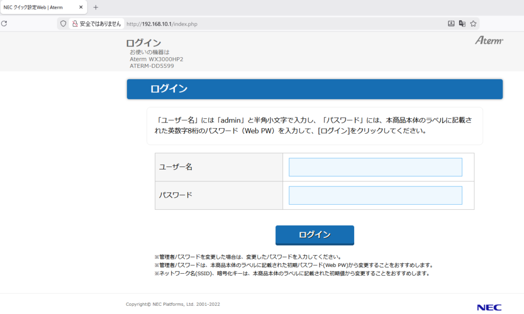 まずは、設定を行うためにルーターの管理画面へアクセスします。